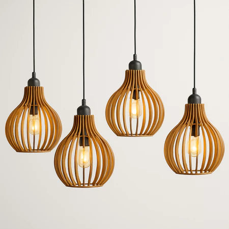 Kit 4 Pendentes de Madeira MDF – Lustre Moderno Gota FiordLand ✨