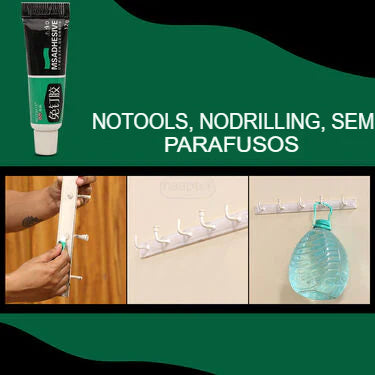 Cola Ultra Forte Sem Pregos: Este adesivo de alta qualidade e ecologicamente correto é perfeito para todos os seus projetos de DIY, reparos domésticos e necessidades profissionais. Projetado para versatilidade, forma uma ligação ultra forte em uma variedade de superfícies, como madeira, metal, vidro, pedra, plástico e muito mais.