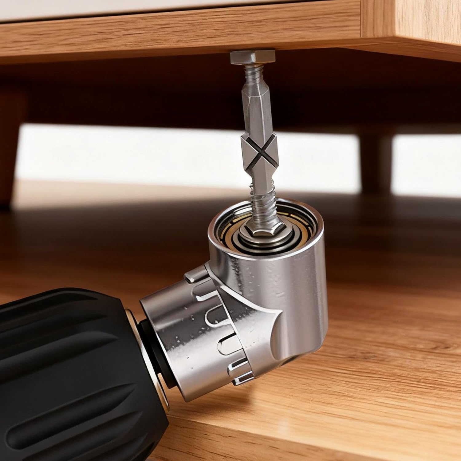 Nosso adaptador de broca foi projetado para facilitar facilmente os parafusos em espaços apertados. É compatível com várias brocas e chaves, permitindo o acesso a locais de difícil acesso que outras ferramentas não conseguem controlar.