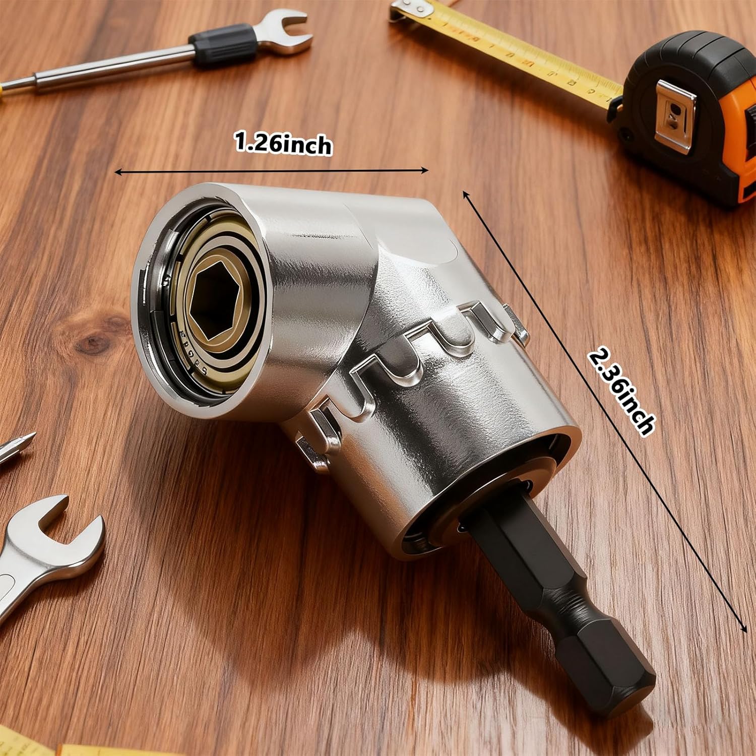 Padrão 1/4 de polegada: Nosso adaptador de broca angular é adequado para todas as brocas e chaves de soquete, a cabeça funcional é transportada com um dispositivo magnético, que pode ser conectado à cabeça hexagonal padrão de 1/4.